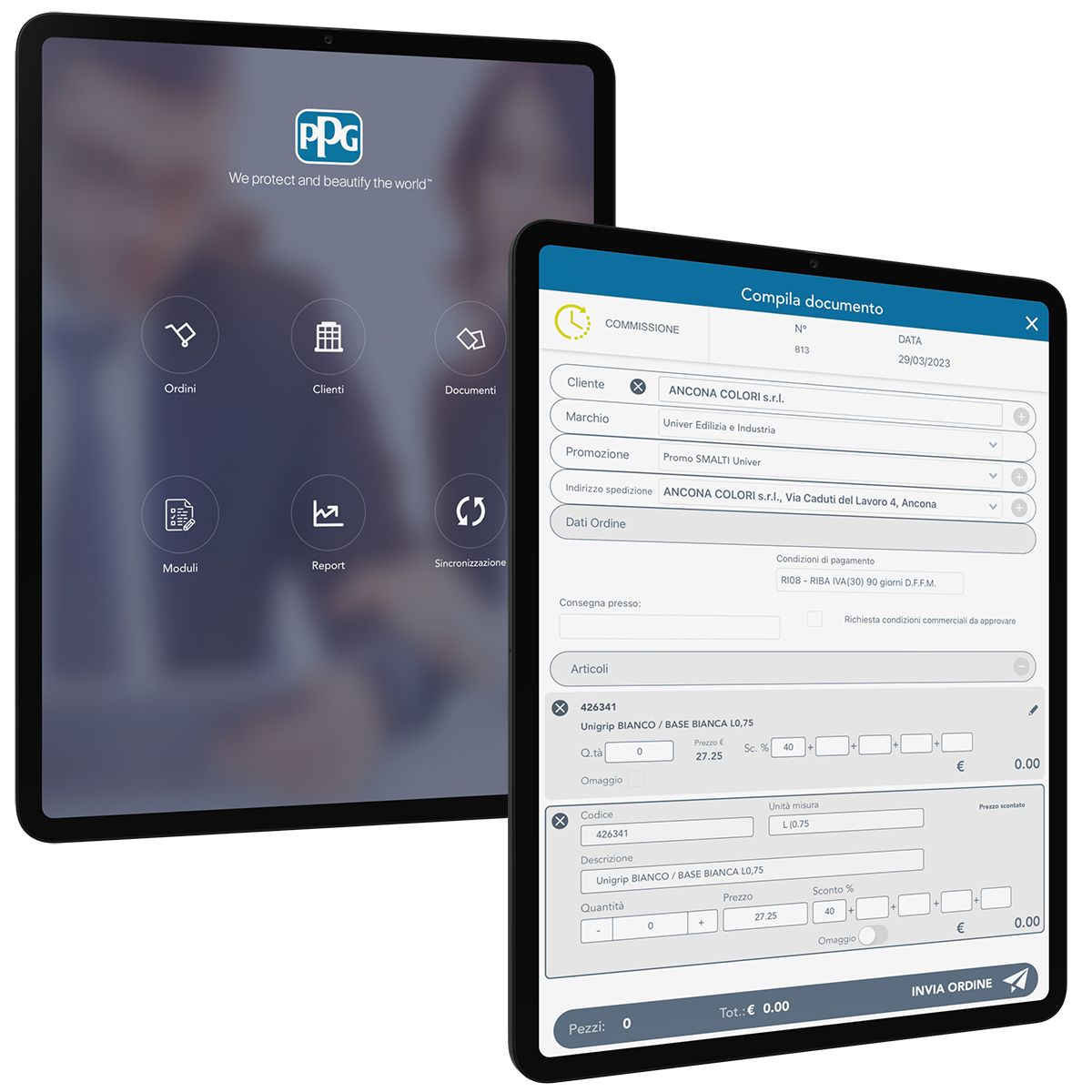 ppg univer vernici app gestione rete vendita order sender enterprise